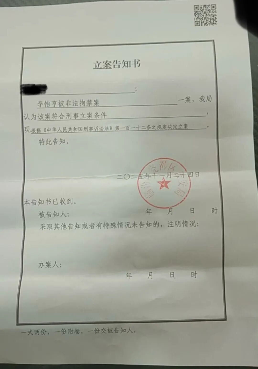 11月26日凌晨,中国驻柬埔寨大使馆发文:11月25日晚,有网友发帖反映中国公民李某某在柬埔寨失联。中国驻柬使馆得知这一消息后立即联系柬警方了解、核实相关情况。驻柬使馆将继续密切跟进案件进展,切实维护在柬中国公民安全及合法权益。11月26日早上,李先生向记者提供了临汾市尧都区公安局开具的立案告知书,显示李怡亨被被非法拘禁一案符合刑事立案条件,11月24日决定立案。