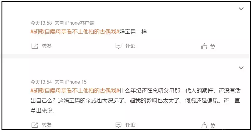 ——妈宝也许是胡歌的一面,但把胡歌的人生问题都归结于他的妈妈,实在对胡歌妈妈太不公平了。